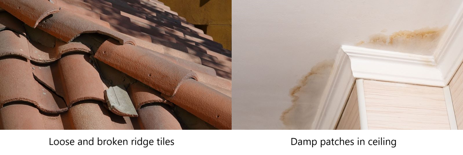 - What’s wrong: The Roof ‘Valley area’ is where two parts of the roof meet in a dip, and the mortar can start to wear away. This can lead to leaks, loose and damaged tiles. This area is crucial because it directs rainwater down the roof and into the gutters.