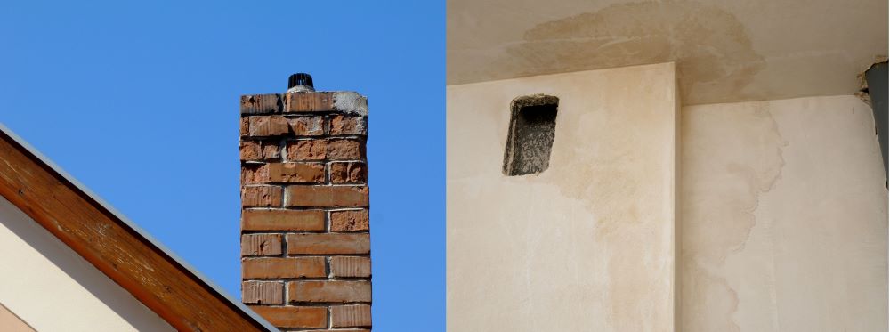 Left to right: Loose mortar on chimney, Damp patches on internal walls around the chimney area